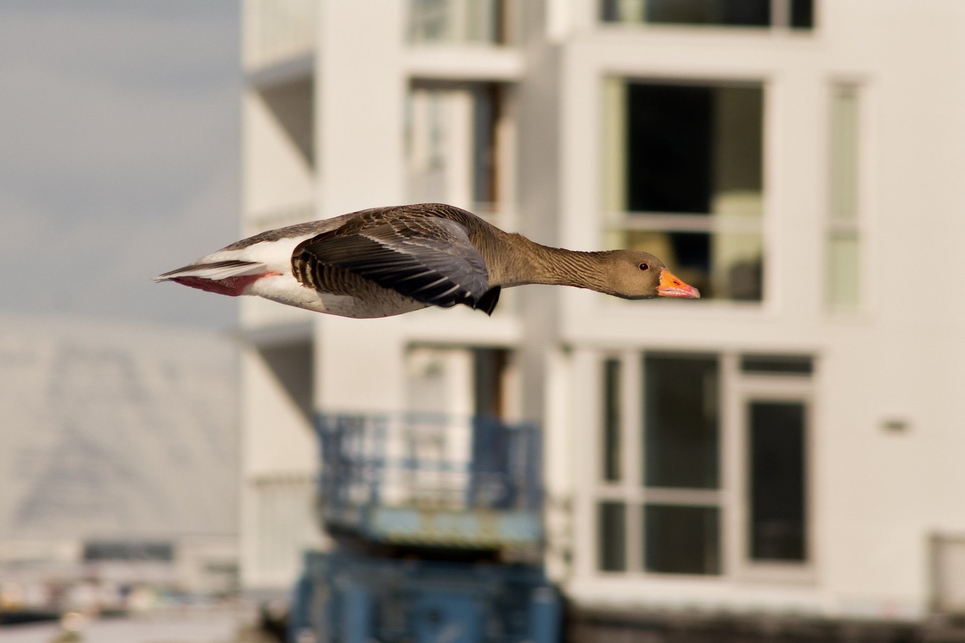 Der Flugglück des Morgens flog in die Stadt