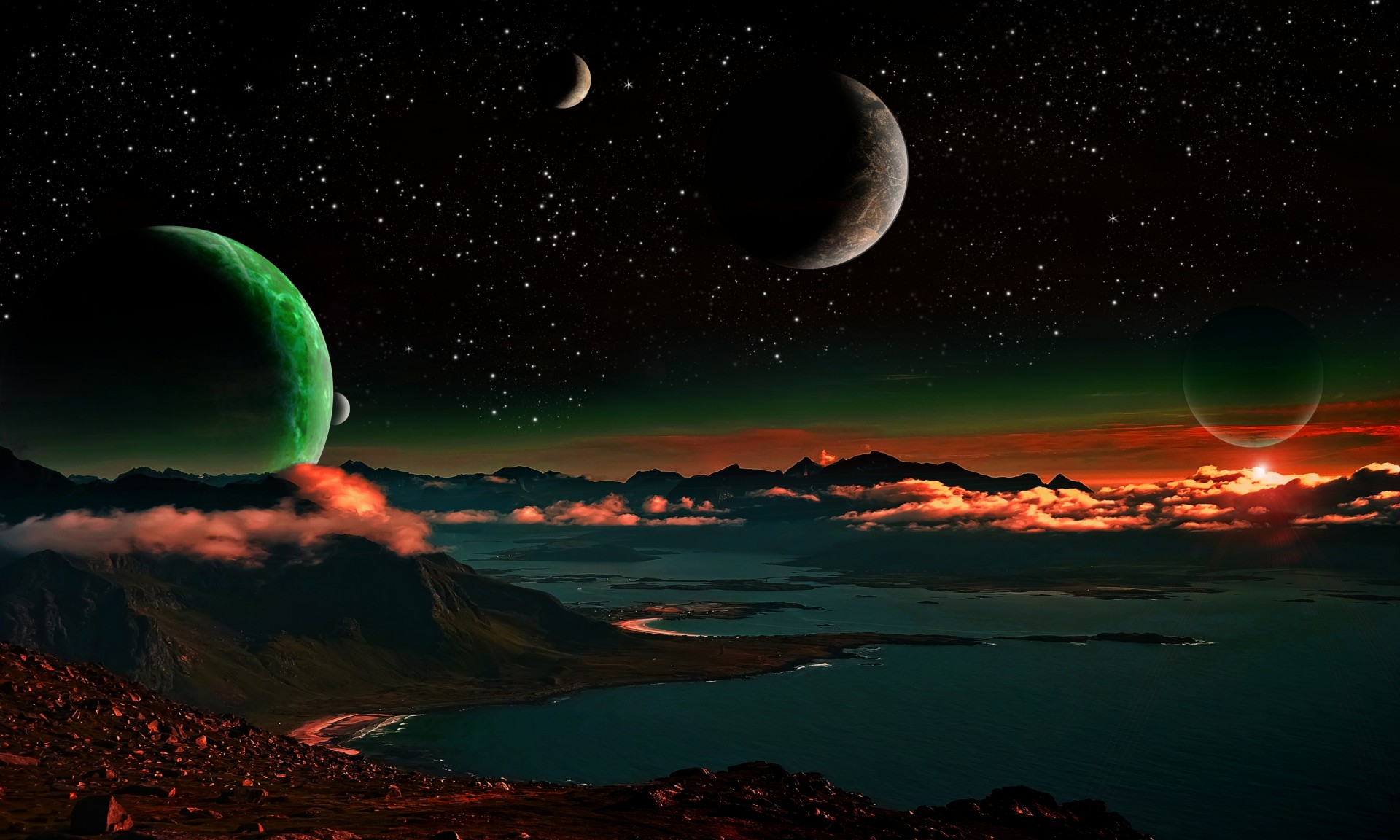 Bild des weltraums in 3d ansicht von meret und den sternen und planetenBild des Weltraums in 3D Ansicht von Meret und den Sternen und Planeten