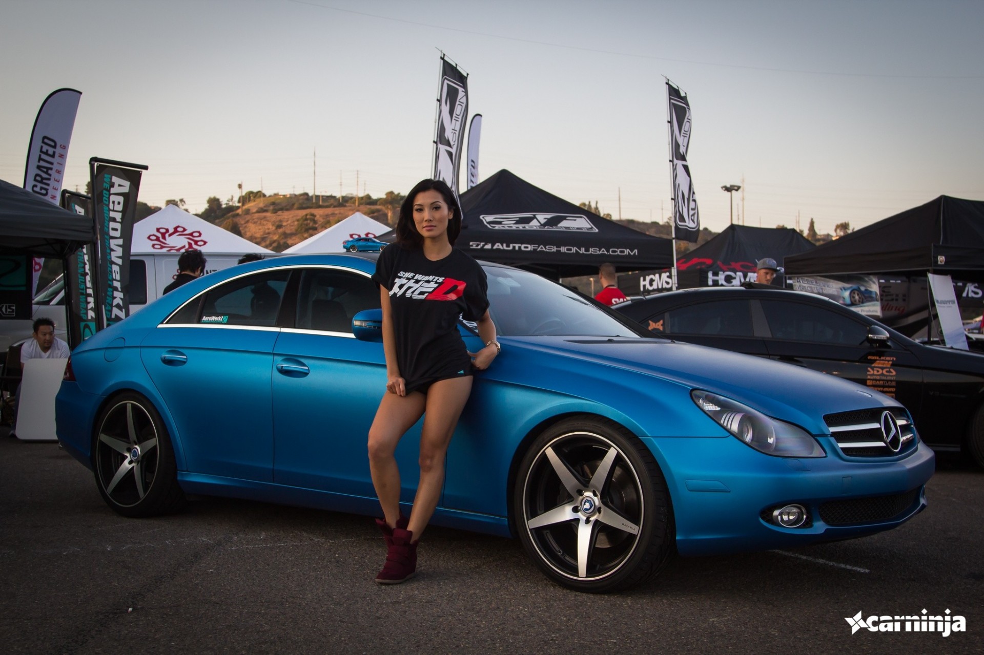 Sexy asiatische frau in der nähe eines blauen mercedesSexy asiatische Frau in der Nähe eines blauen mercedes