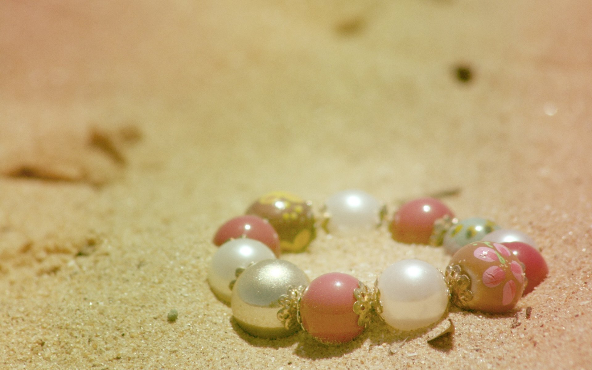 Ein Armband aus Perlen, das auf dem Sand liegt
