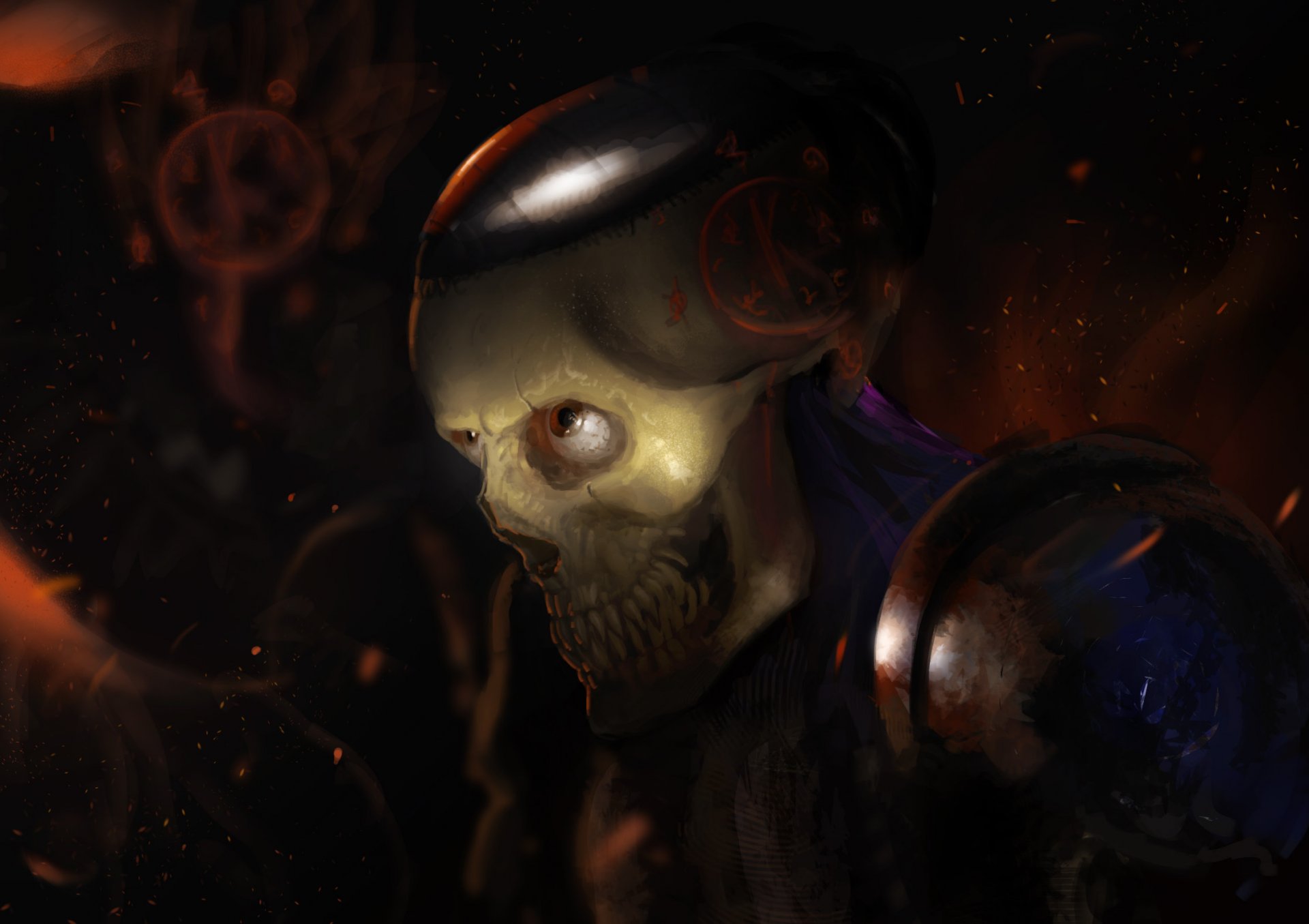 Atmosphärische kunst mit einem skelett mit scharfen reißzähnenAtmosphärische Kunst mit einem Skelett mit scharfen Reißzähnen