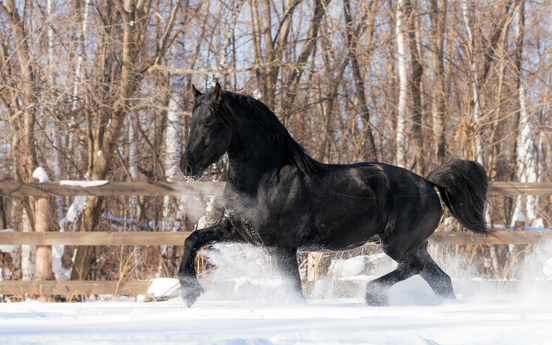 Luxuriöses pferd vor dem hintergrund der winternaturLuxuriöses Pferd vor dem Hintergrund der Winternatur