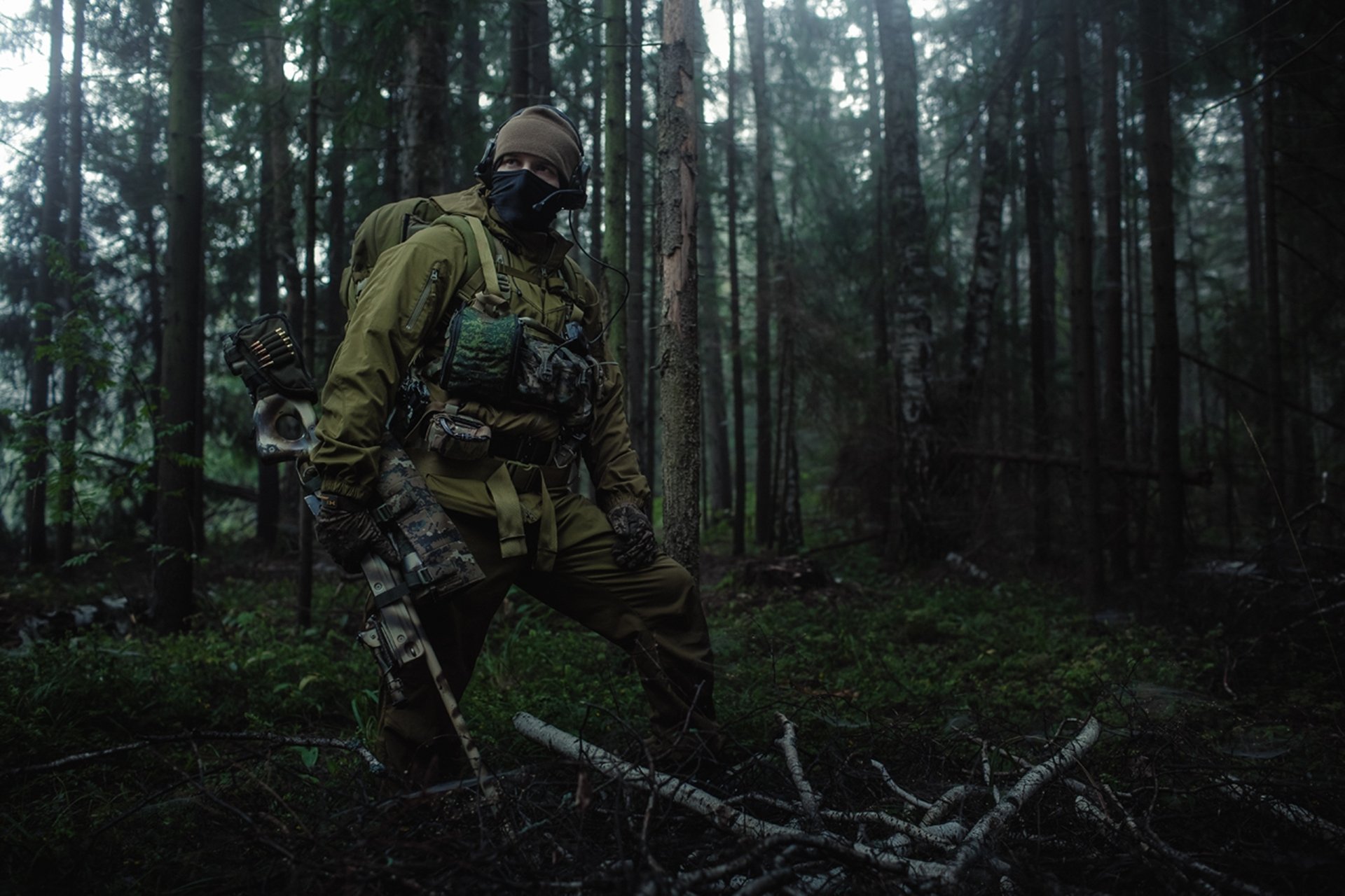 Ein maskierter marines-soldat wandert öfter durch das undurchdringlicheEin maskierter Marines-Soldat wandert öfter durch das undurchdringliche