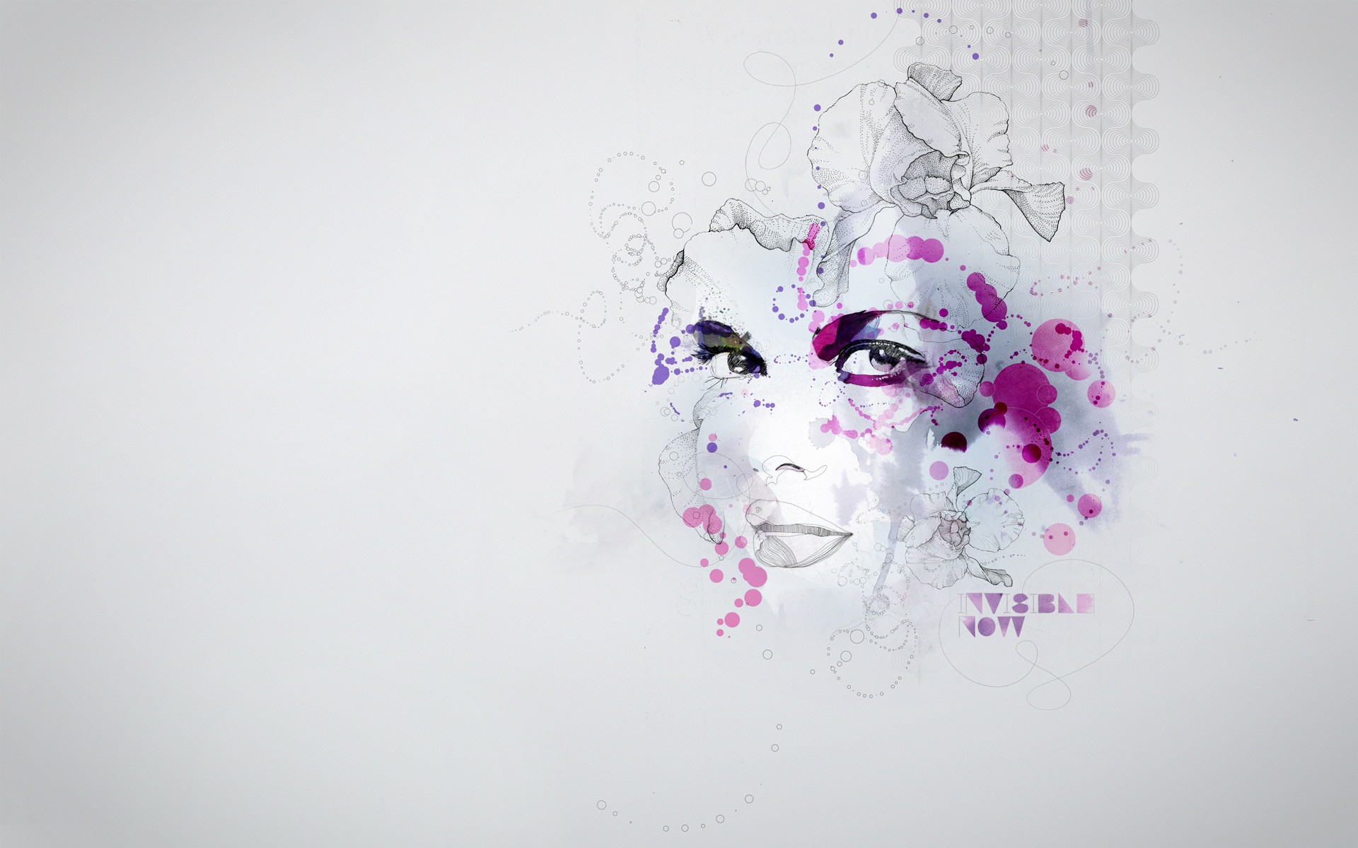 Das Mädchen mit den großen Augen und dem gefiederten Haar mit dem Hasen