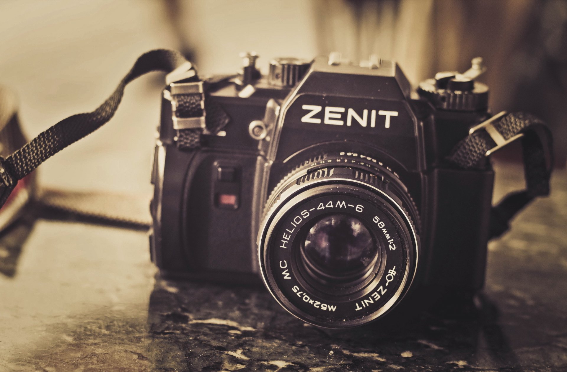 Eine alte Zenit-Kamera in Schwarz