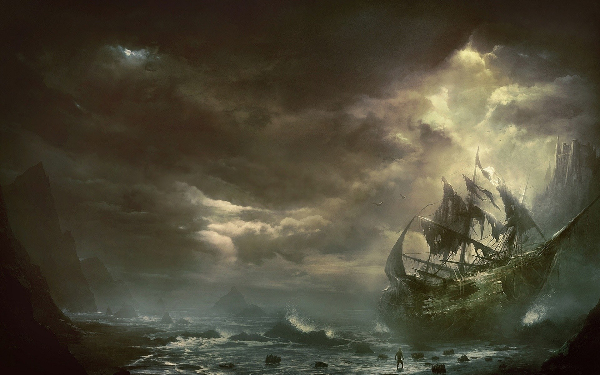 Altes Schiff an die Küste geworfen
