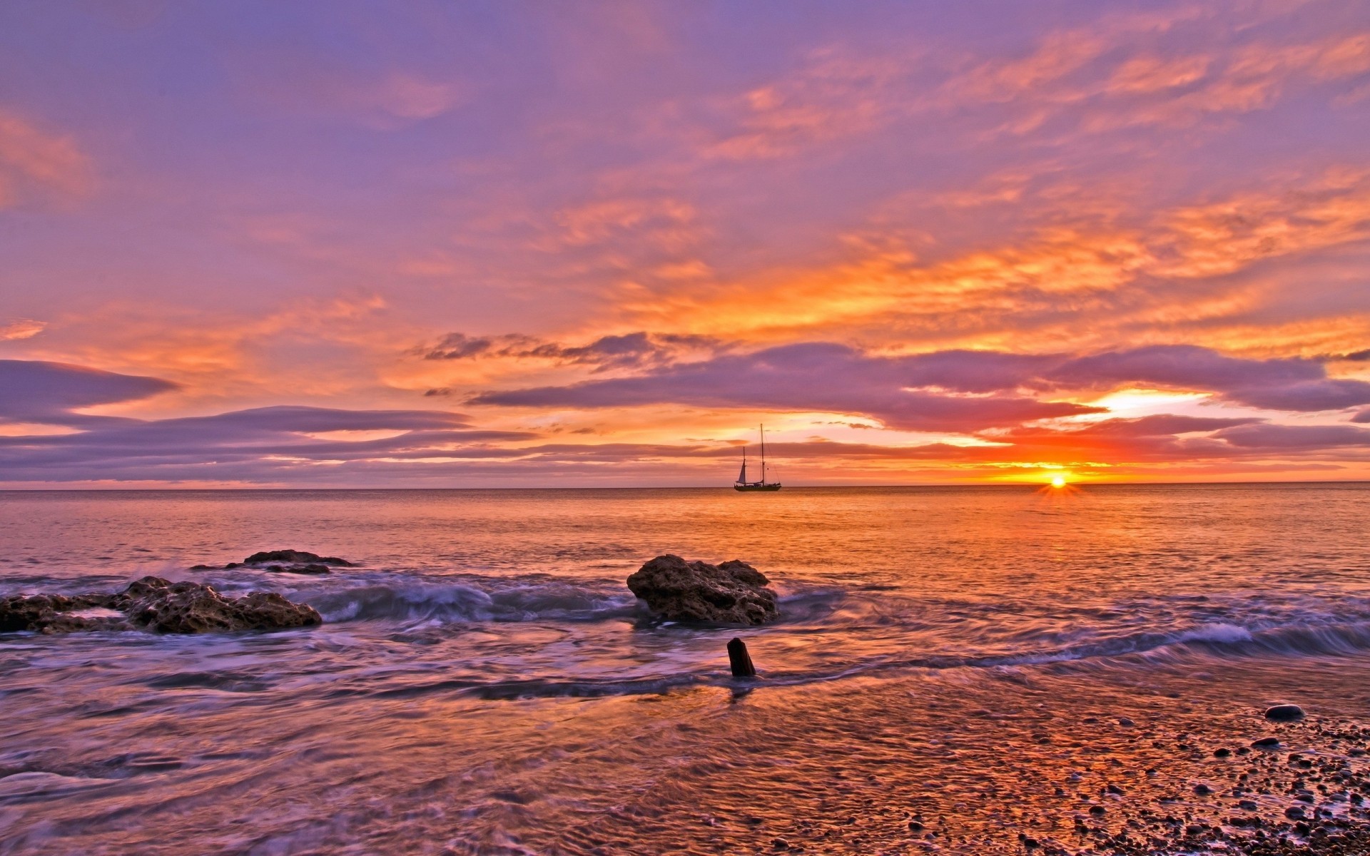 Segelboot weg bei sonnenuntergang. ruhe und gelassenheit des meeresSegelboot weg bei Sonnenuntergang. Ruhe und Gelassenheit des Meeres