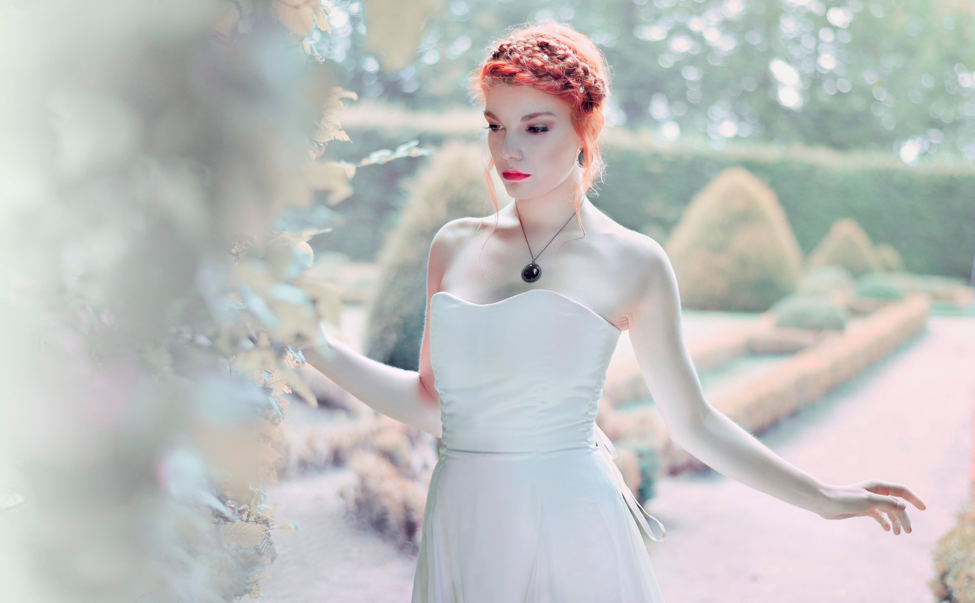 Junges Modell auf weißem Hintergrund glänzt schön mit Brüsten