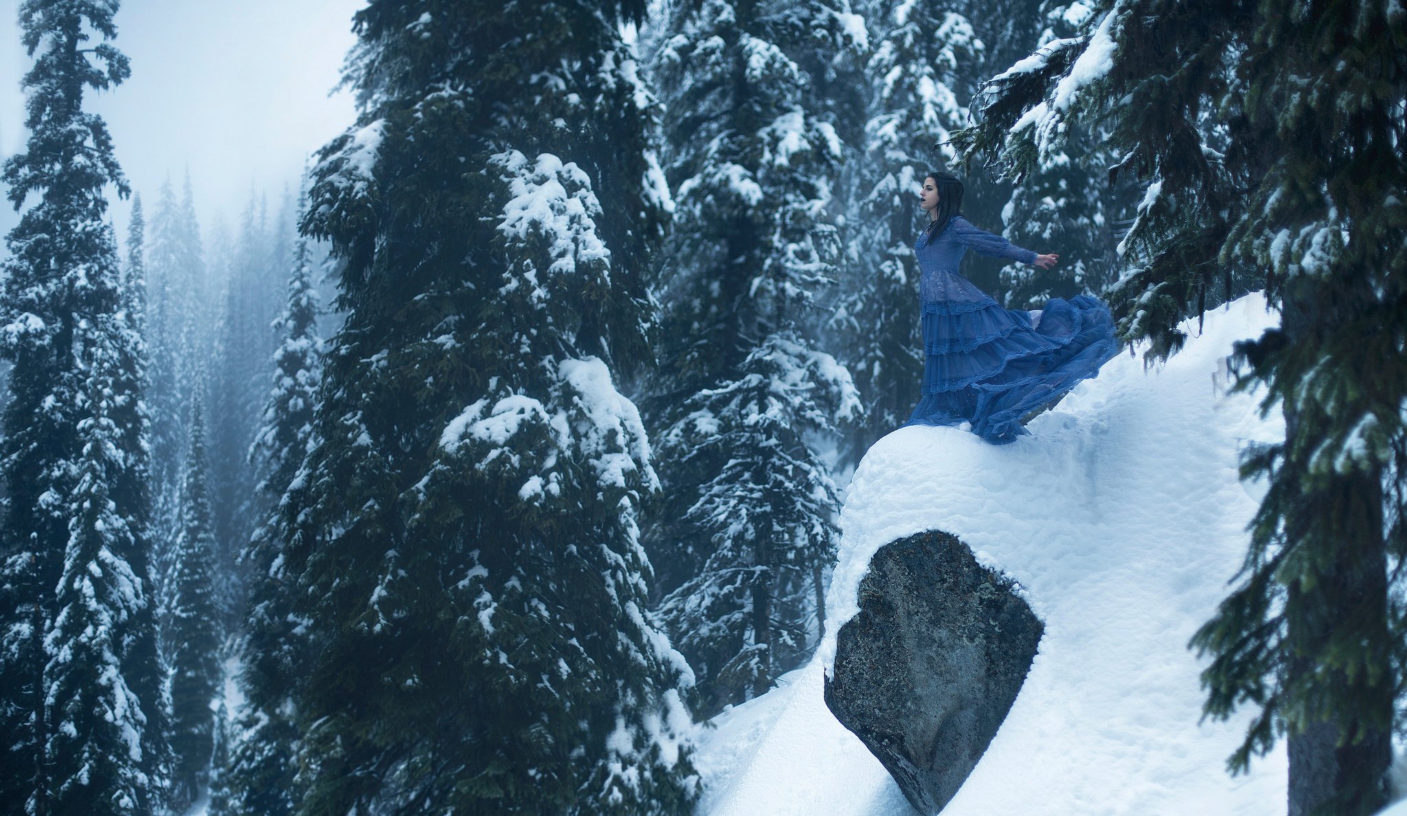 Schönes mädchen im roten kleid mit offenem rücken auf dem hintergrund eines dunklen felsensSchönes Mädchen im roten Kleid mit offenem Rücken auf dem Hintergrund eines dunklen Felsens
