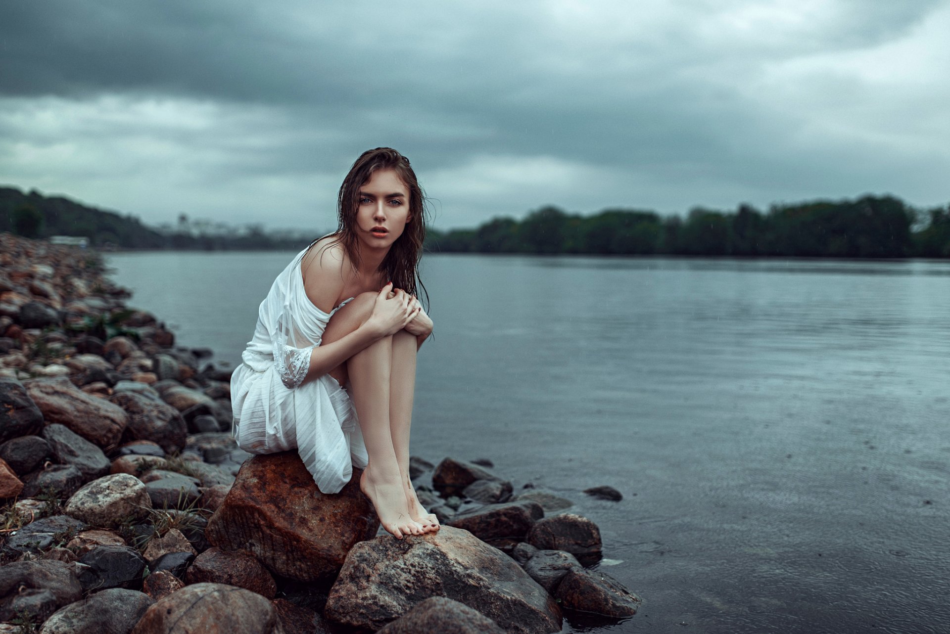 Meerjungfrau auf den felsen am meer unter dem mondMeerjungfrau auf den Felsen am Meer unter dem Mond