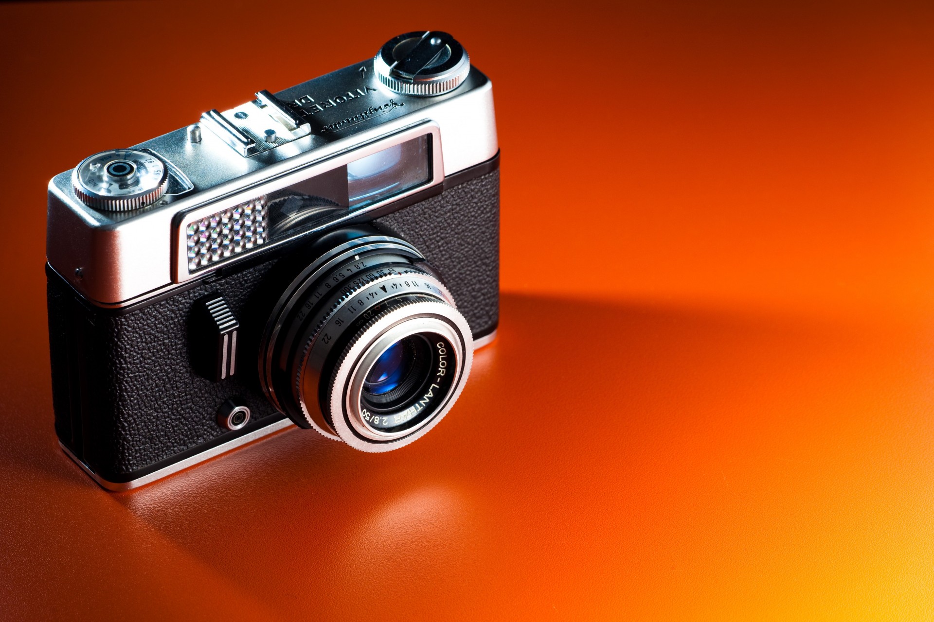 Kamera-Klassiker auf orangefarbenem Hintergrund