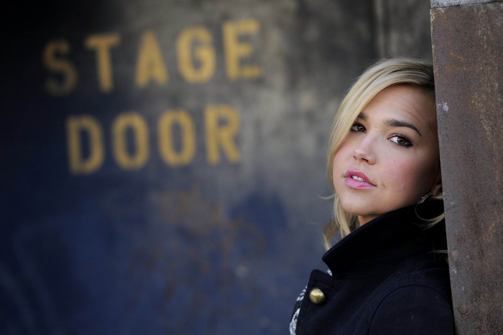 Kebbel ariel mädchen im schwarzen mantel steht um die ecke
