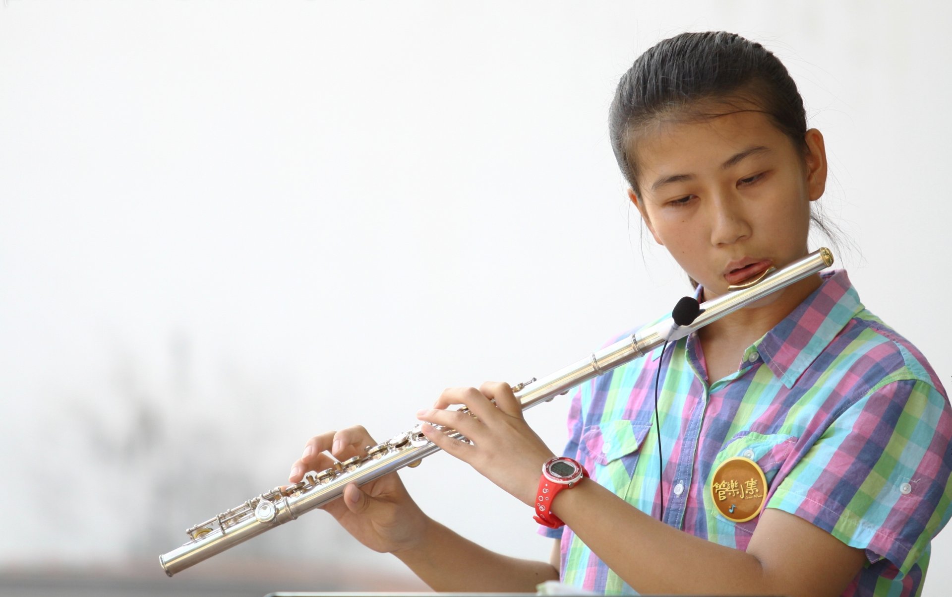 Asiatische Mädchen spielt Flöte