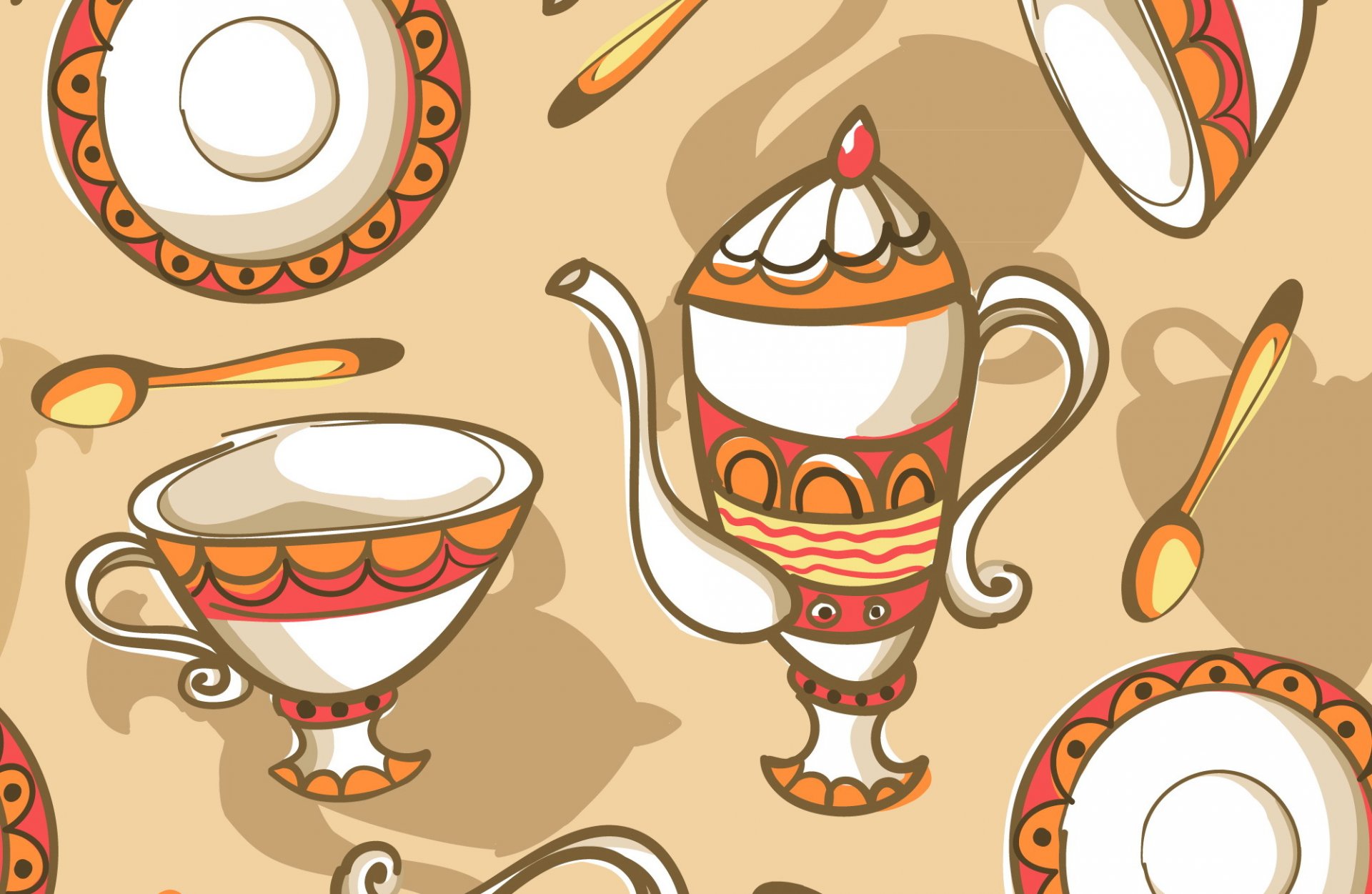 Stillleben mit Tee, Süßigkeiten und Blumen