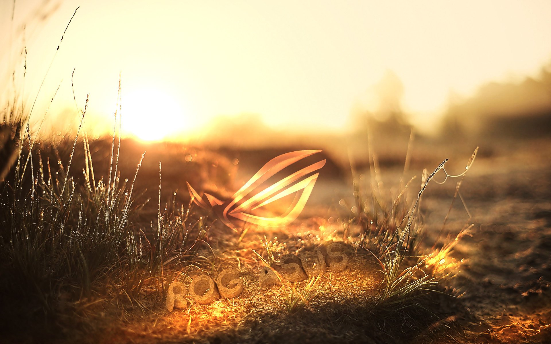 Sonnenuntergang der untergehenden sonne mit der reflexion von strahlen auf dem grasSonnenuntergang der untergehenden Sonne mit der Reflexion von Strahlen auf dem Gras