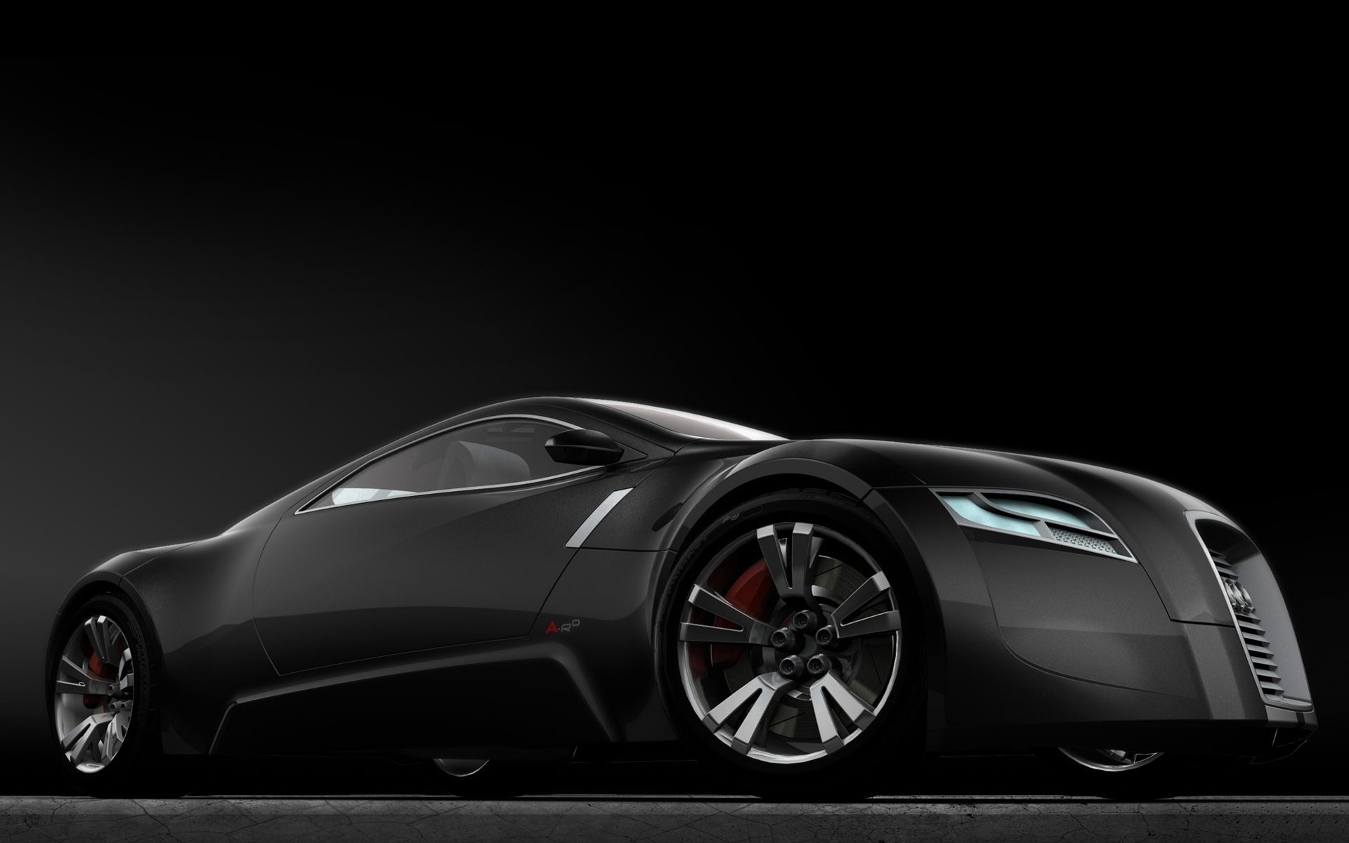 Schwarzes Audi R8 Cabrio im Hintergrund der Berge