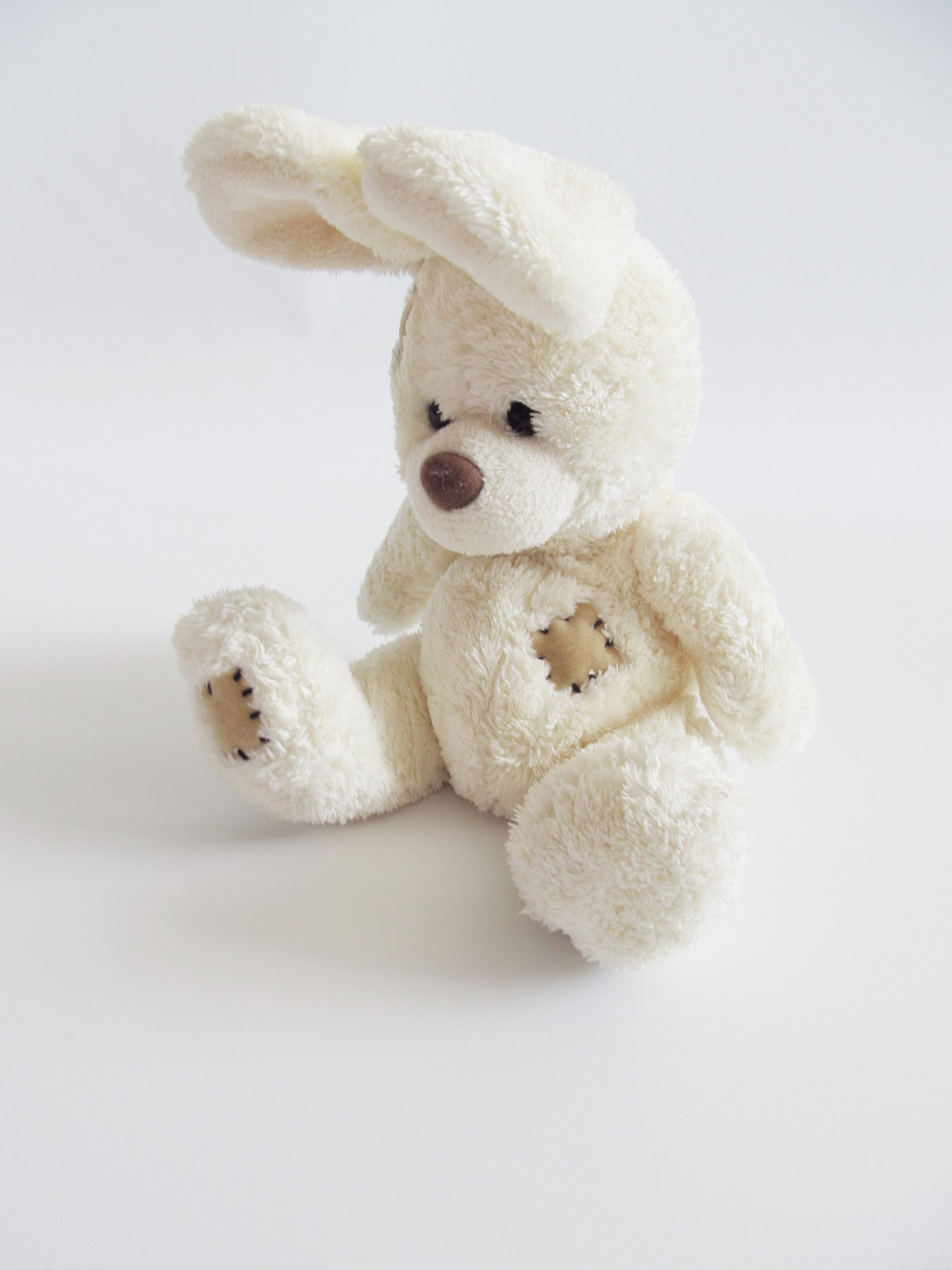 Ein süßer, weißer flauschiger hase sitzt auf einem weißen hintergrundEin süßer, weißer flauschiger Hase sitzt auf einem weißen Hintergrund
