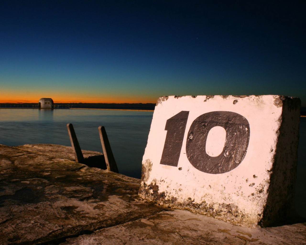 Bild mit einer Figur auf einem Stein bei Sonnenuntergang