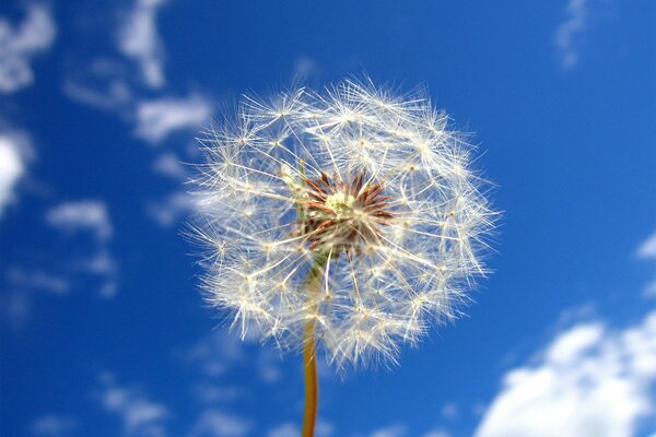 Weißer Löwenzahn auf einem blauen Himmelshintergrund