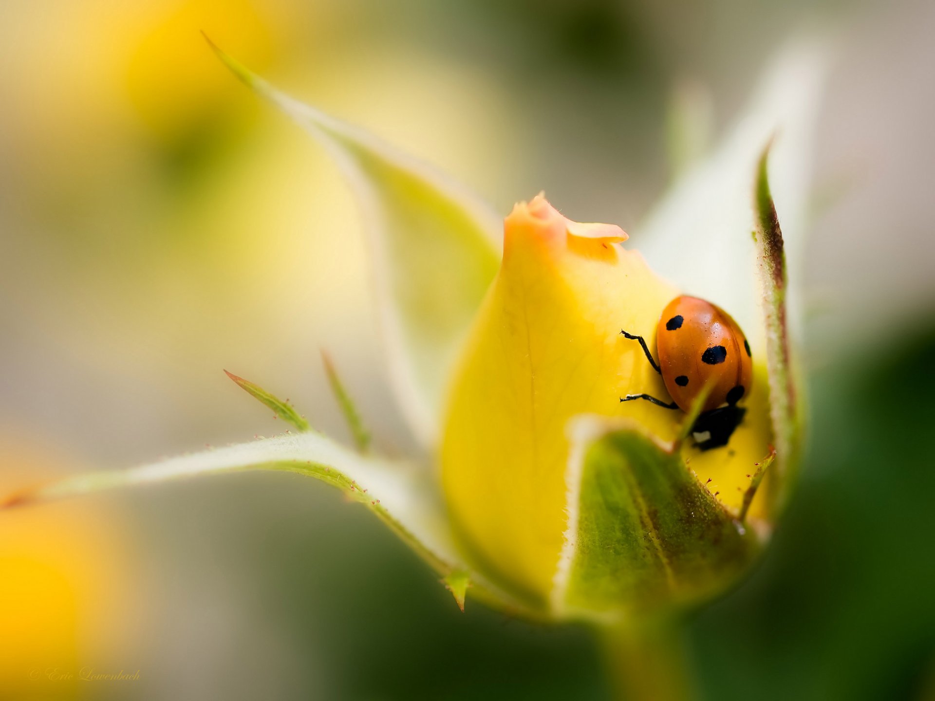 Marienkäfer hat schutz auf einer weißen blume gefundenMarienkäfer hat Schutz auf einer weißen Blume gefunden