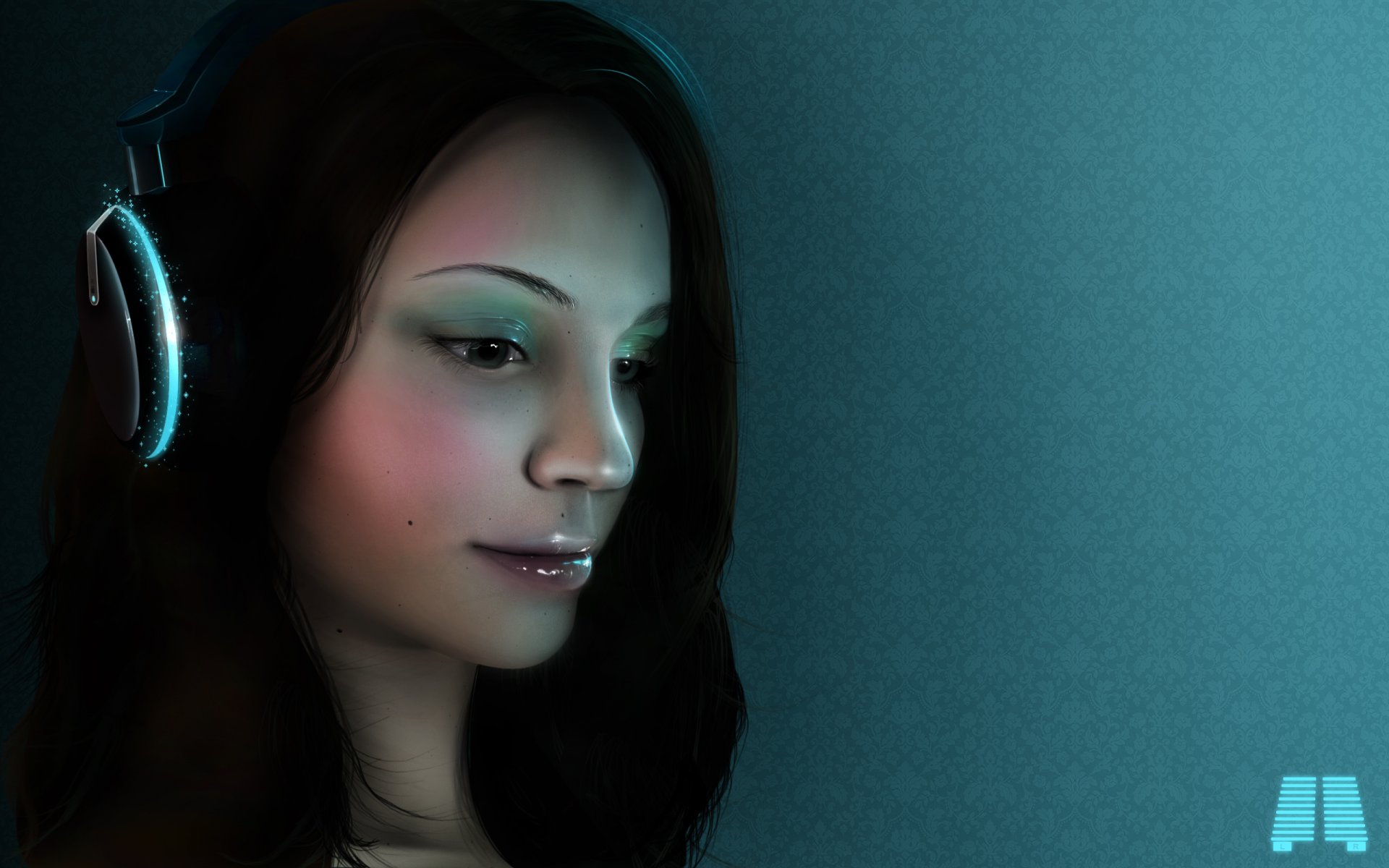 Mädchen mit kopfhörern, die musik hören