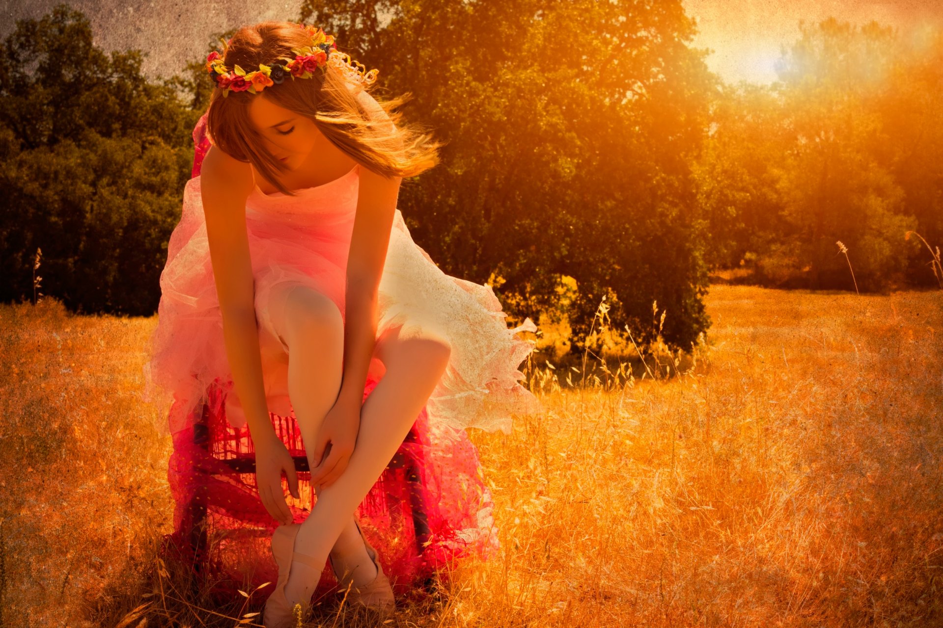 Mädchen im Feld bei Sonnenaufgang