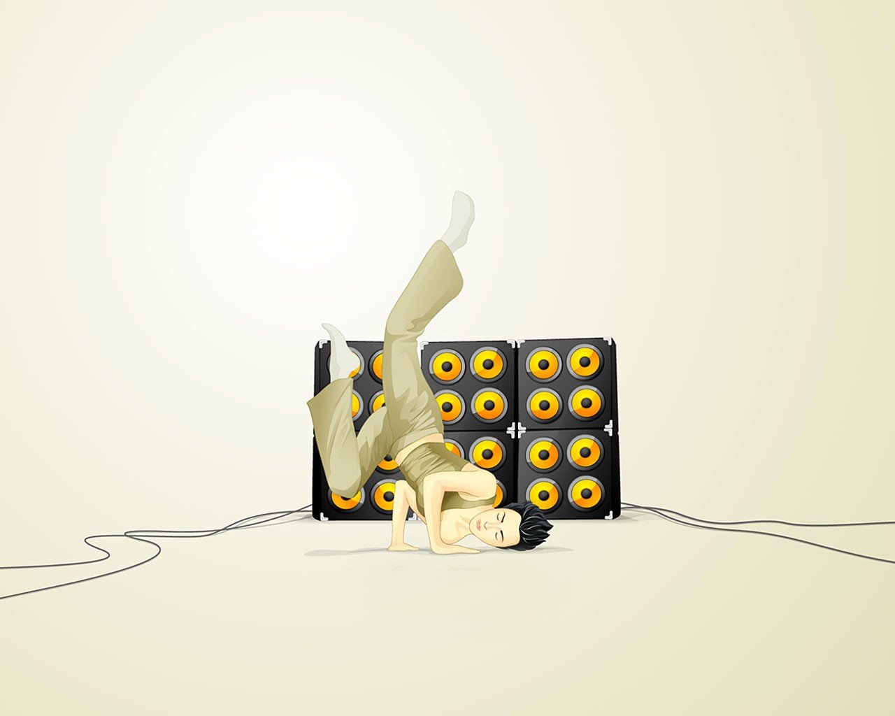 Ein Mädchen im Tanz trägt einen Minirock und ein Top auf einem abstrakten Hintergrund