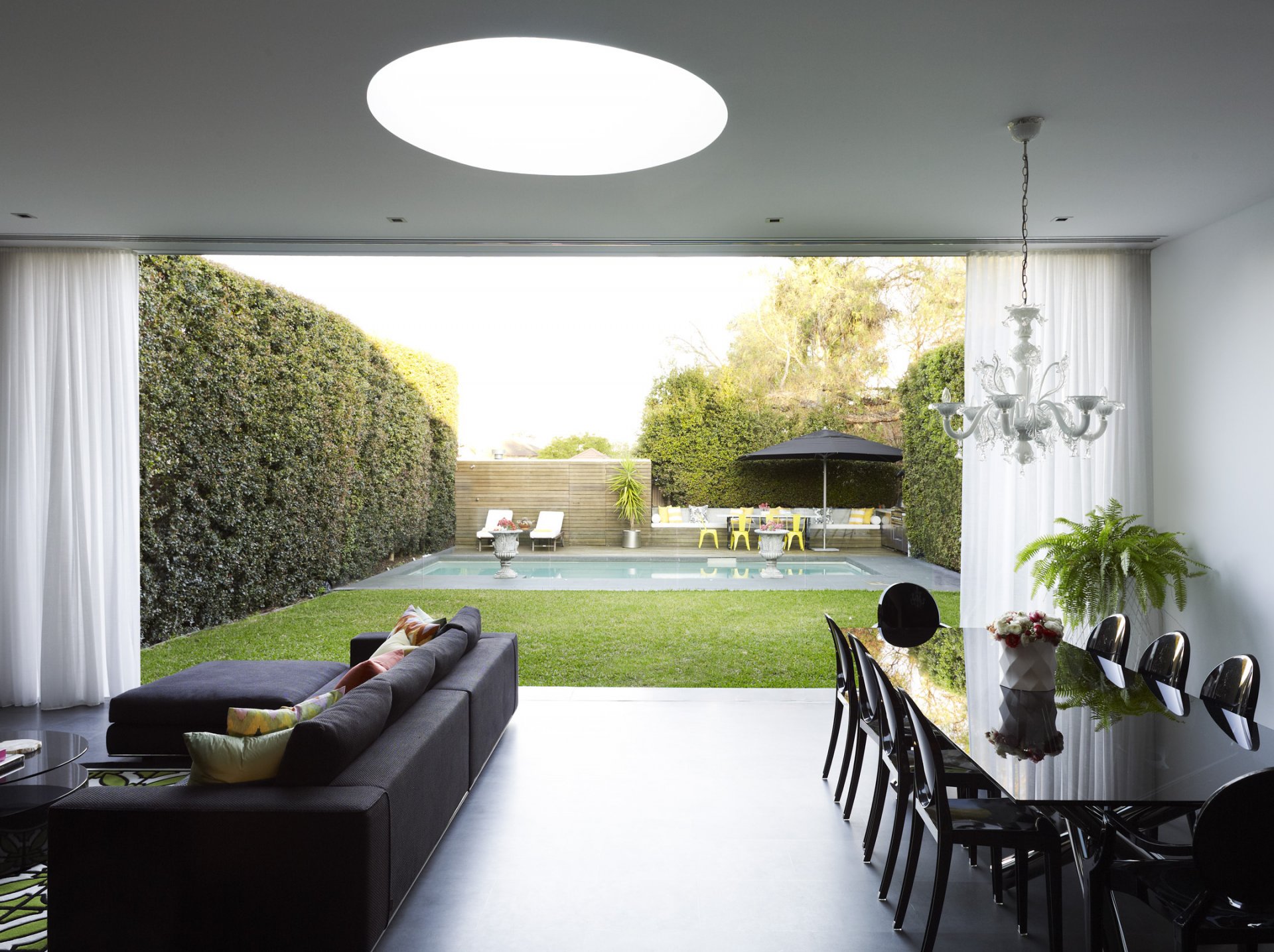 Penthouse-innenhof mit baldachin und frühstücksbereichPenthouse-Innenhof mit Baldachin und Frühstücksbereich
