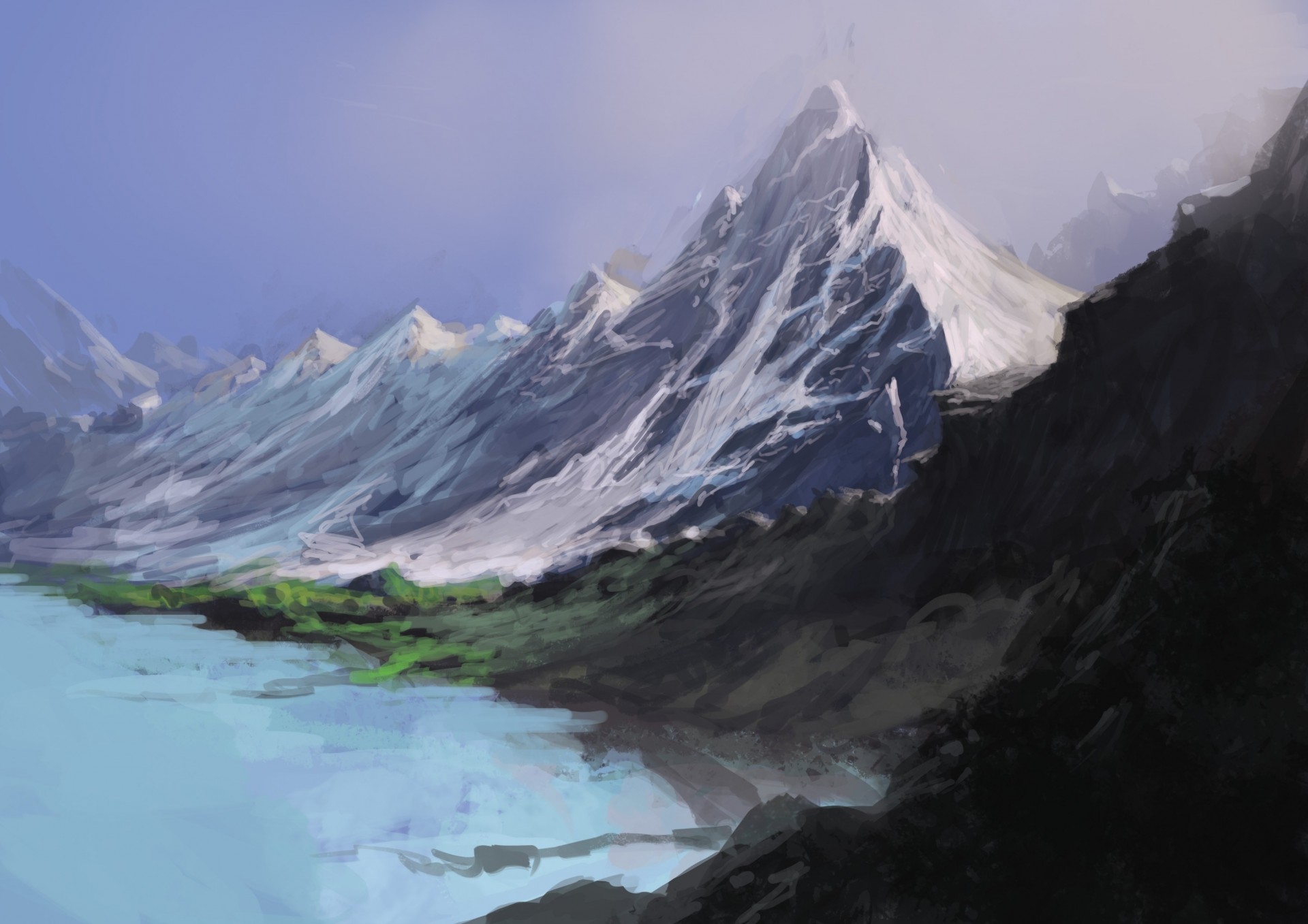 Himmel und schneebedeckte Bergkette