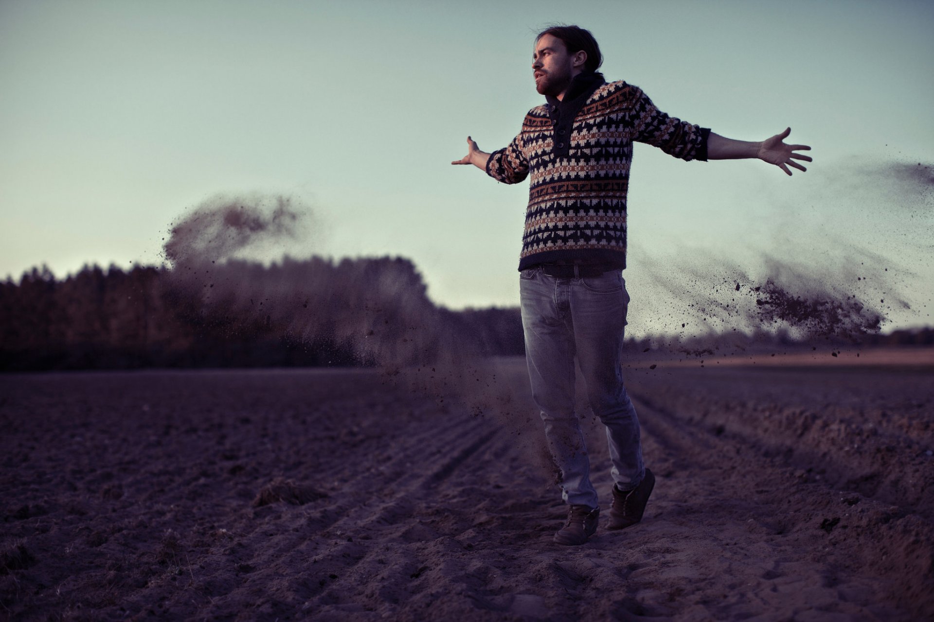 Foto ein Mann geht auf einem Erdfeld spazieren