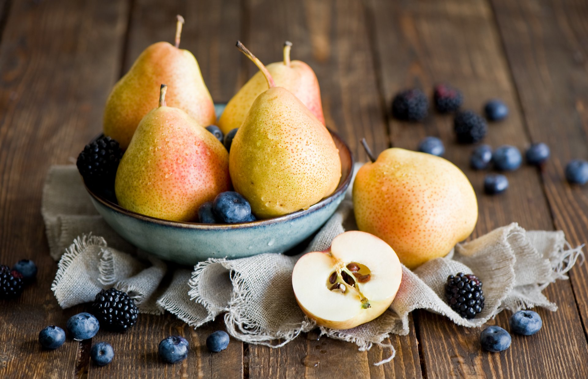 Viele Früchte und Beeren: Äpfel, Birnen, Pflaumen, Trauben