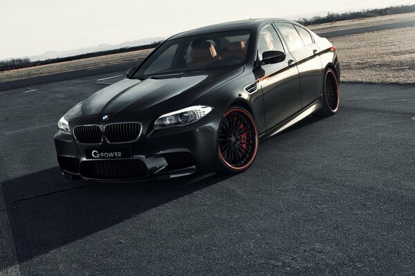 Schwarzer BMW mit getönten Scheiben im Industriegebiet