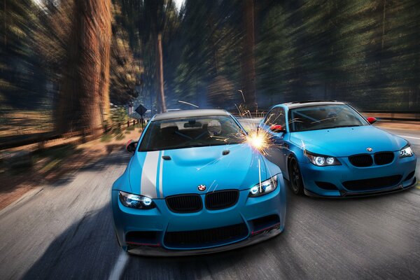 BMW M3 und M5 Rennen im Wald Vorderansicht