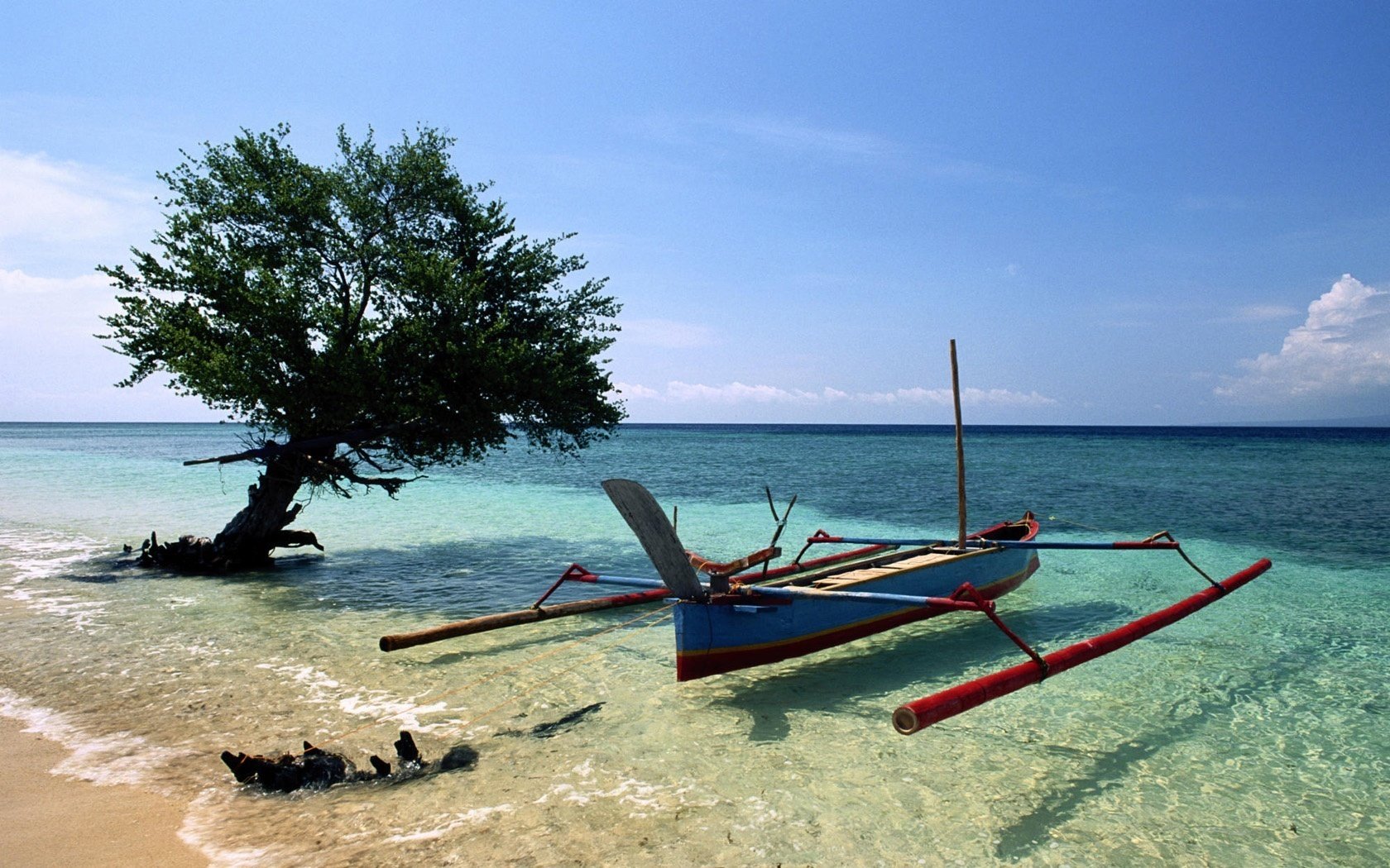 Das Boot liegt bei Sonnenuntergang am Meer