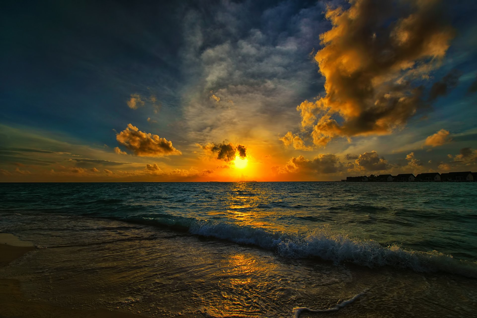 Sonnenuntergang am Meer unter bunten Wolken