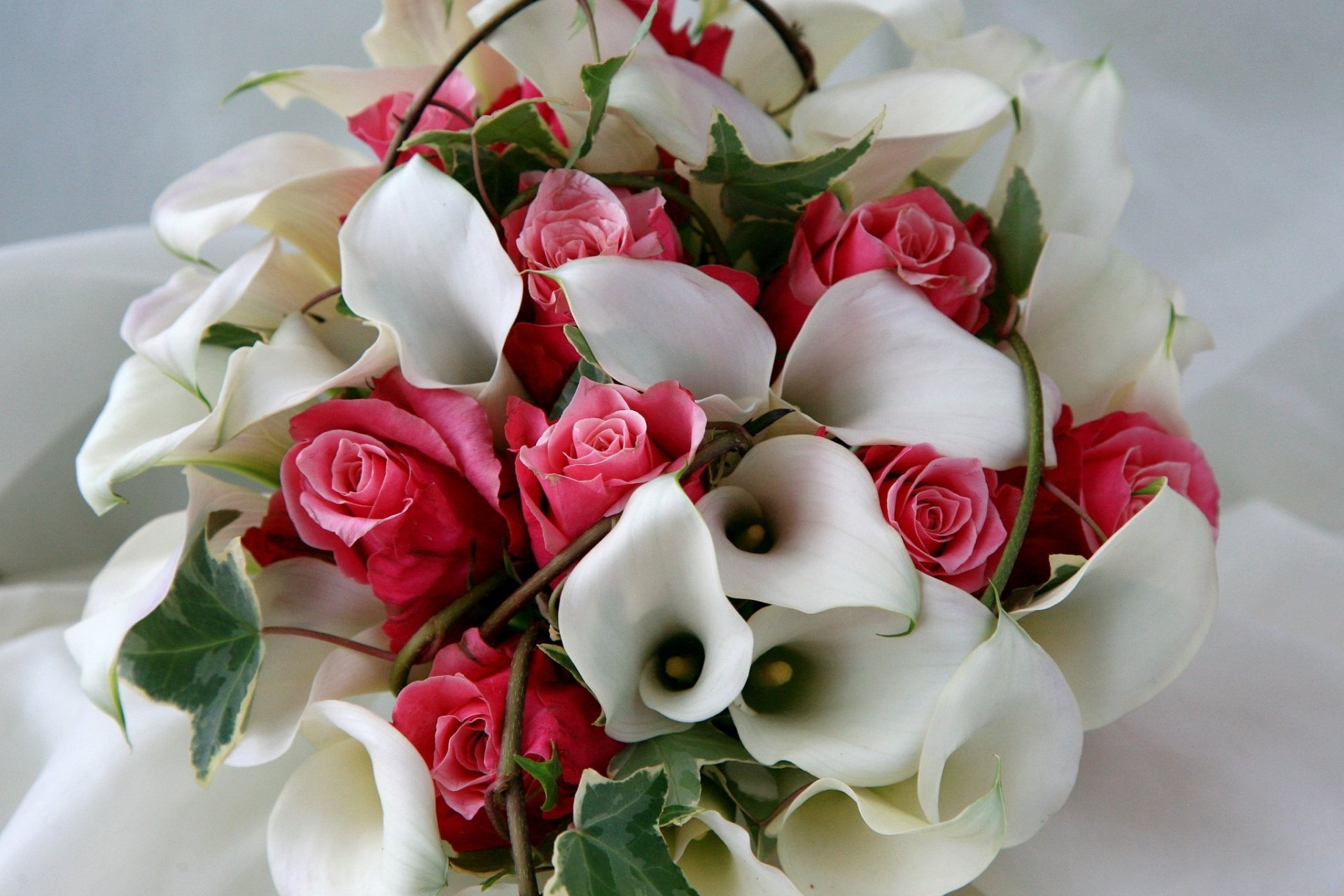 Komposition aus Calla-Blumen in Form eines Blumenstraußes
