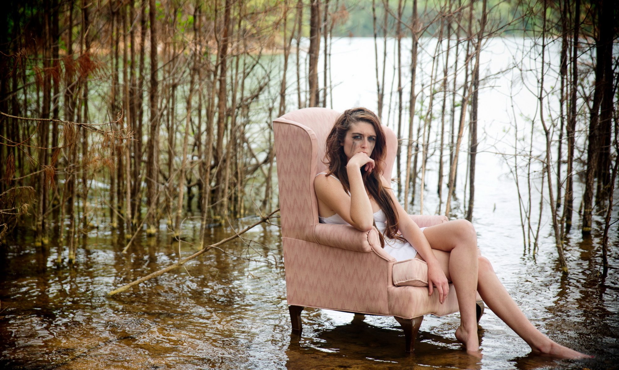 Schlanke Brünette mit schlanker Figur schaut in die Kamera