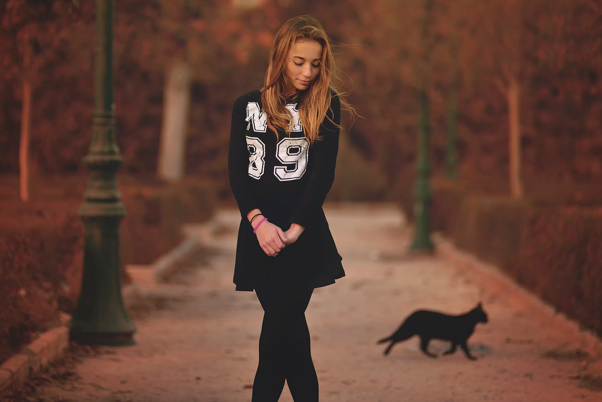 Der BH des Mädchens hält die Brust nicht, die Hände helfen