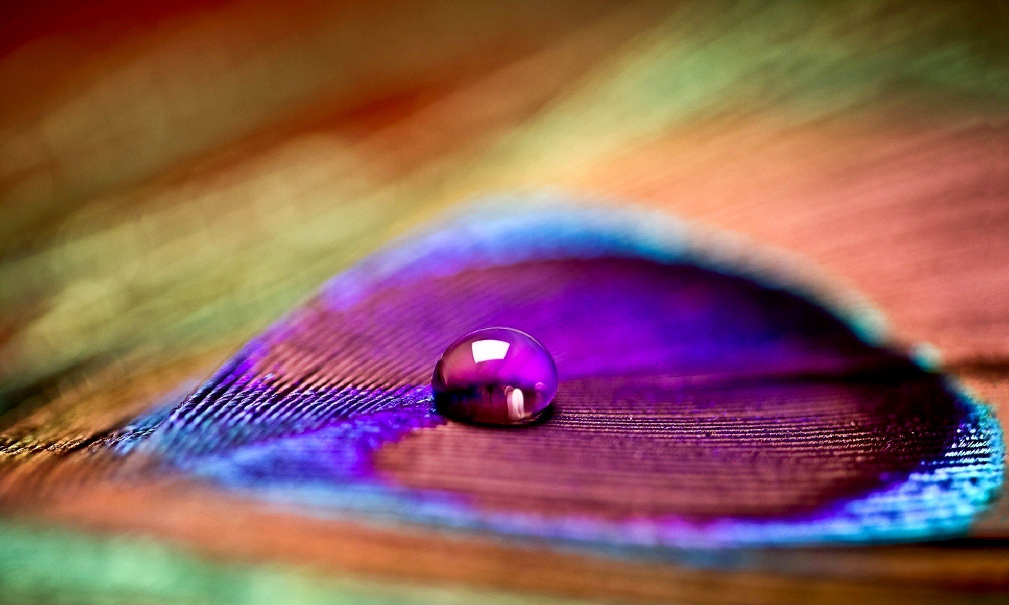Bunte Pfauenfeder mit Wassertropfen