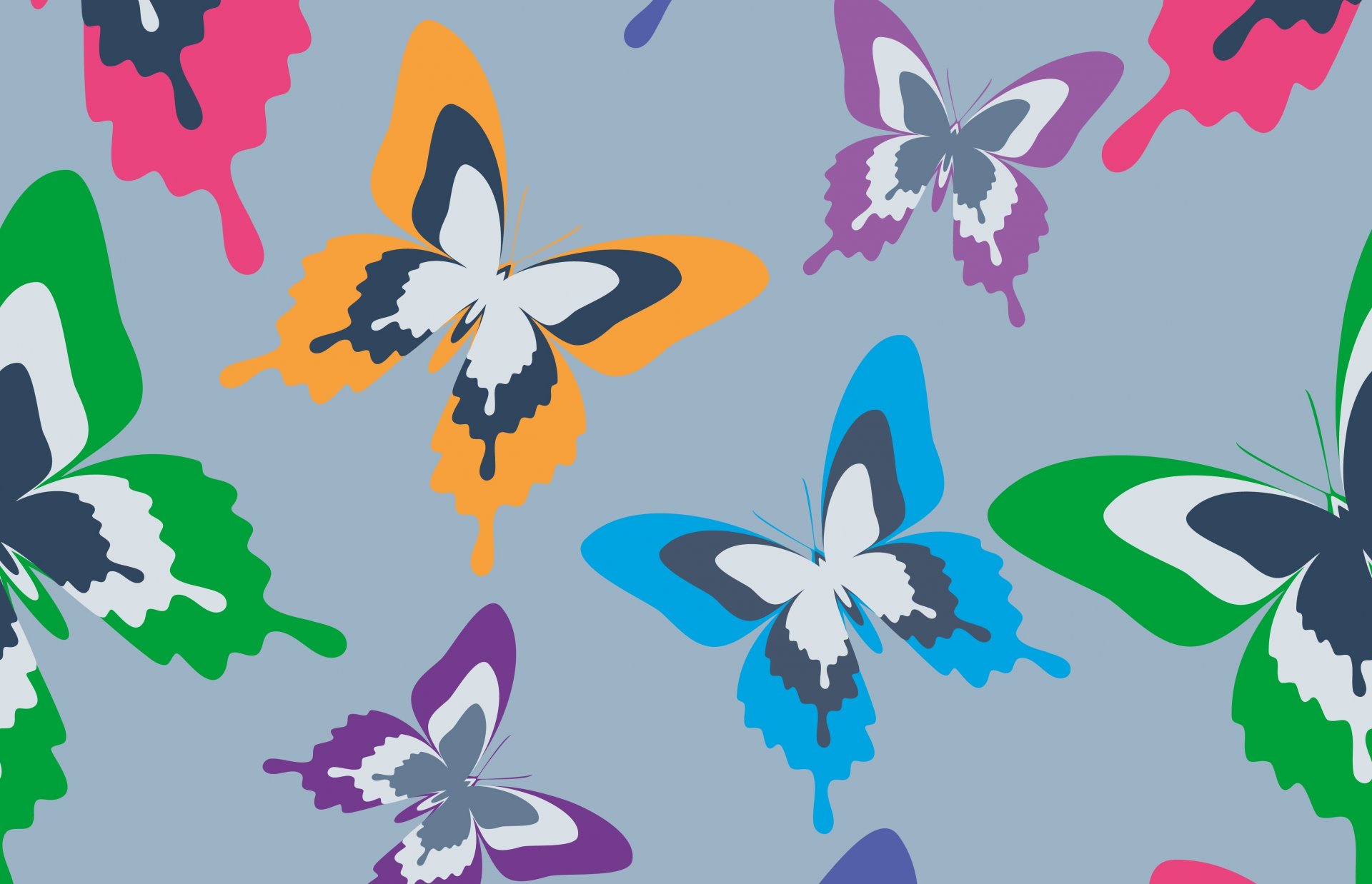 Bunte Schmetterlinge auf grauem Hintergrund