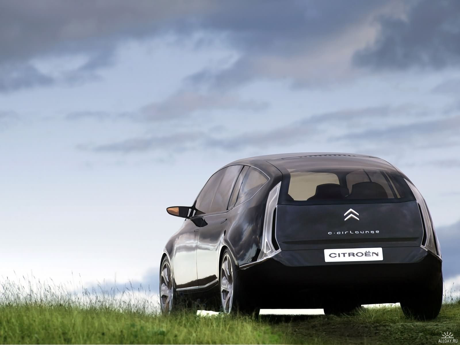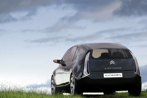 C-airlounge auto-konzept. gras und himmel mit wolken