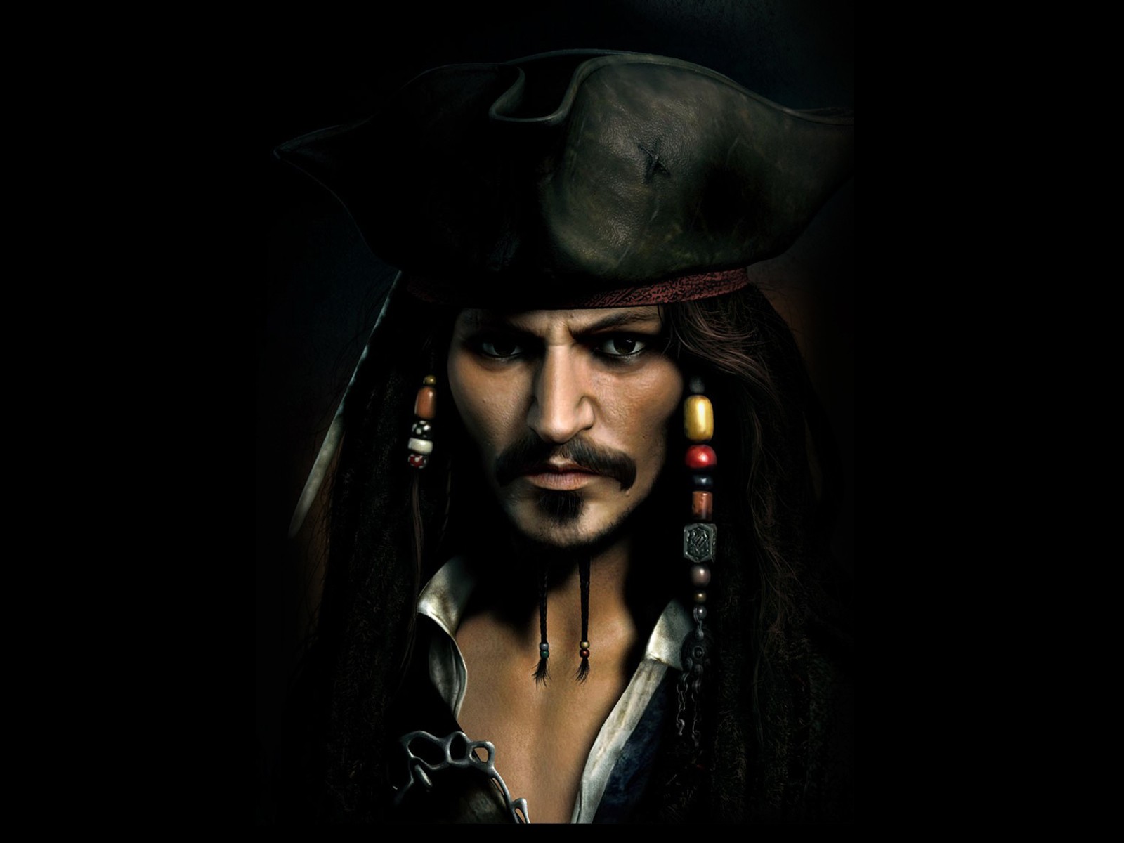 Jack Sparrow schießt Pistolen in verschiedene Richtungen