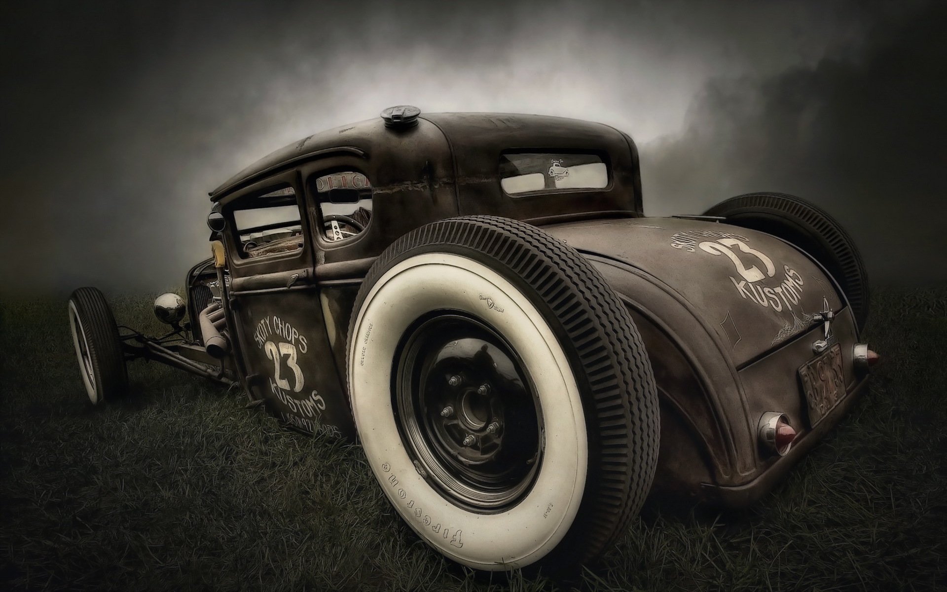 Oldtimer im düsteren Park
