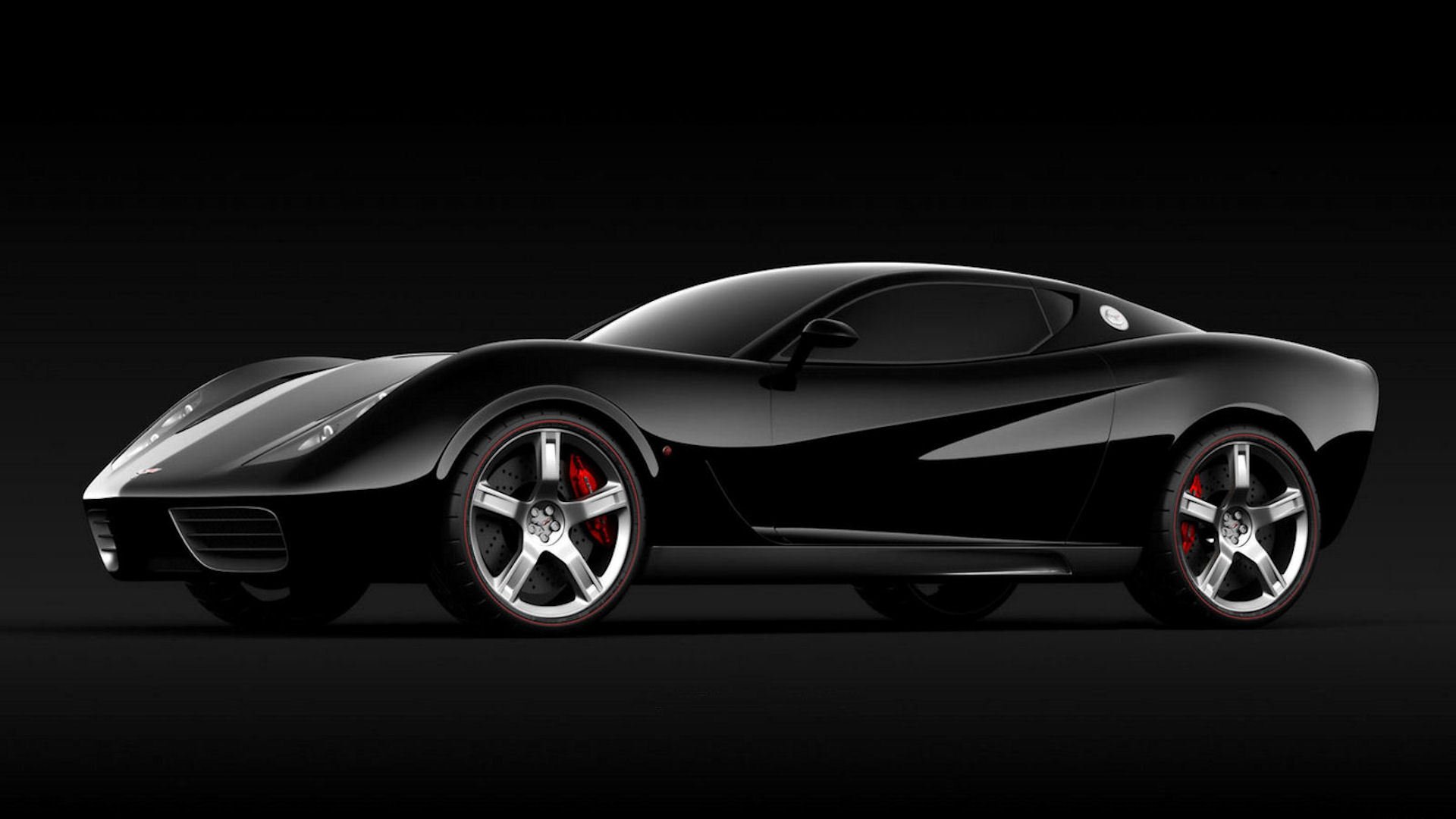 Schwarzer Chevrolet zr1 im Hintergrund einer urbanen Landschaft