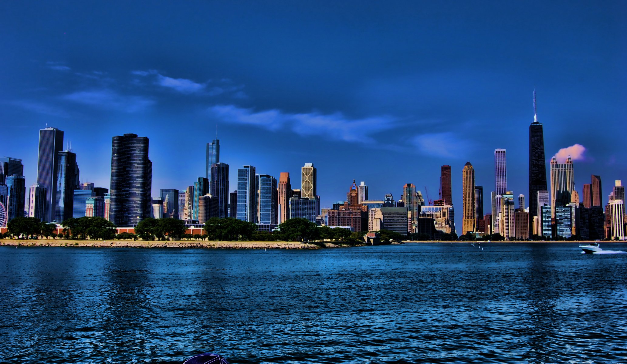 Blick auf das abendliche chicago unter schönem himmelBlick auf das abendliche Chicago unter schönem Himmel