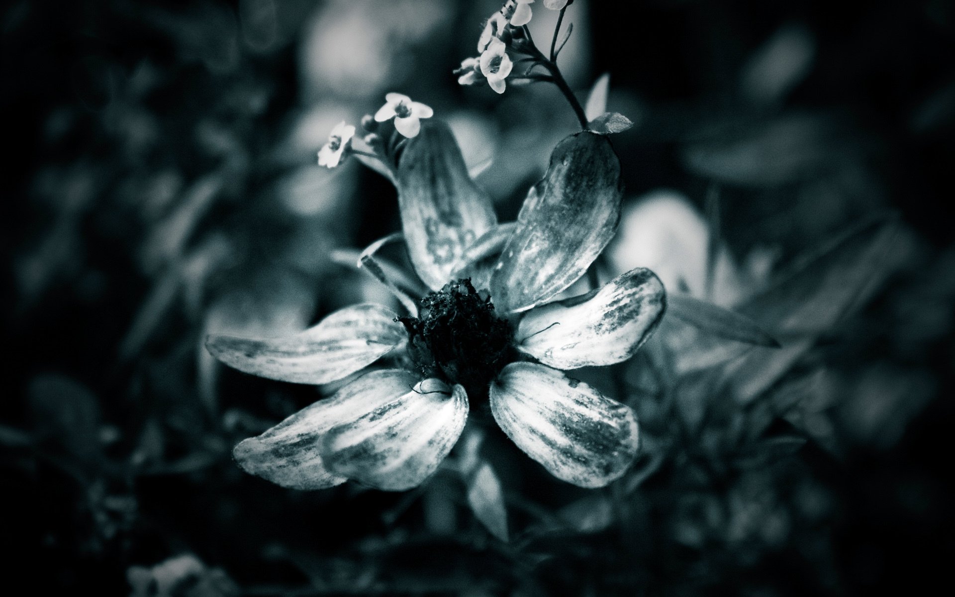 Ein mädchen in einem schwarzen kleid und einer gasmaske sitzt neben einer blumeEin Mädchen in einem schwarzen Kleid und einer Gasmaske sitzt neben einer Blume