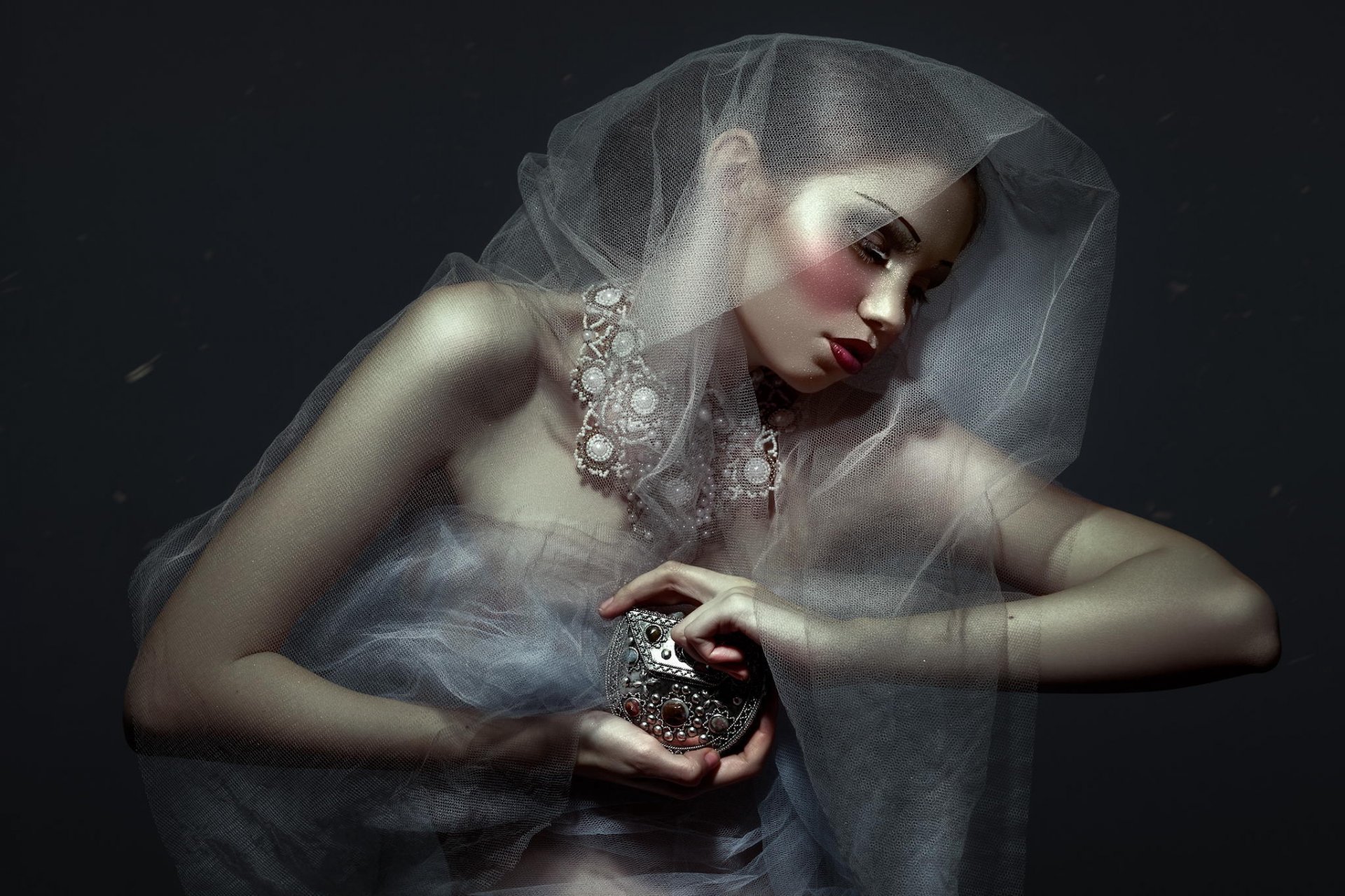 Porträt eines mädchens mit interessantem make-up und trauben im haarPorträt eines Mädchens mit interessantem Make-up und Trauben im Haar