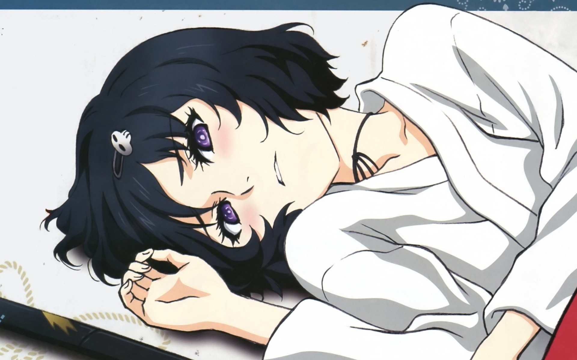 Langhaarige anime-Mädchen unter den Dichtungen im japanischen Stil