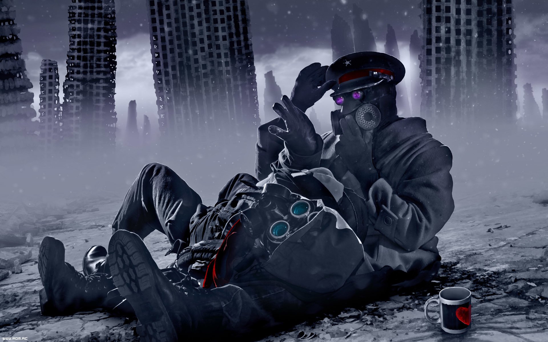 Kunst auf einem apokalyptischen hintergrund von zwei menschen