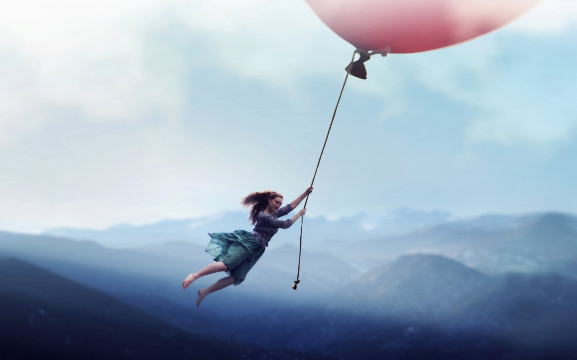 Die situation eines vermissten mädchens, das auf einem ball fliegtDie Situation eines vermissten Mädchens, das auf einem Ball fliegt